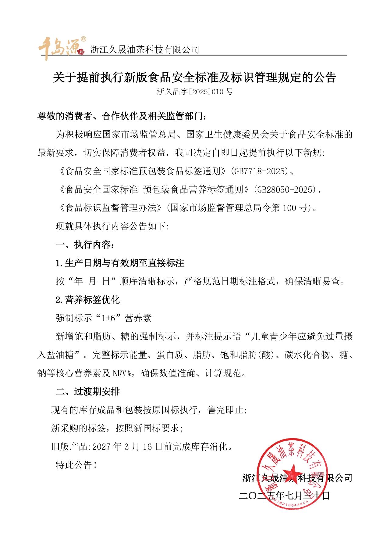 久晟始终将产品质量与安全放在首位,持续为消费者提供更营养、更健康、更安全、更美味的粮油产品。